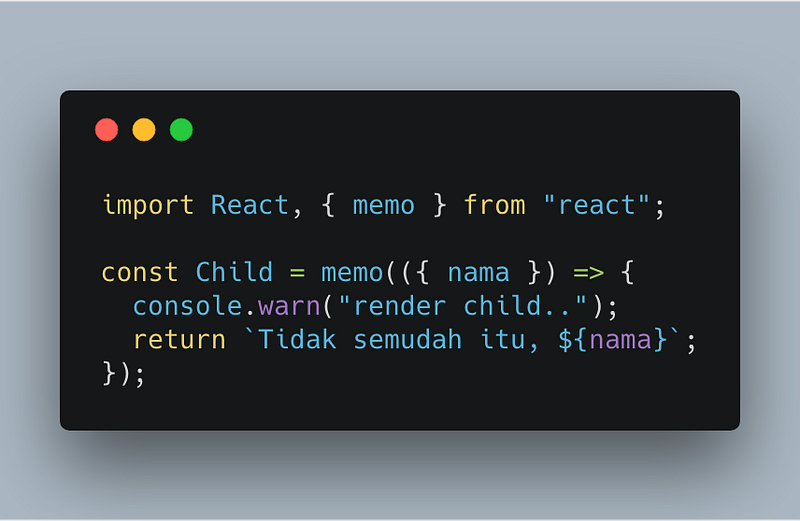 Kita lihat bahwa <Child> tidak akan render ulang jika <Parent> melakukan render ulang, dikarenakan <Child> tidak mengalami perubahan. Inilah memoization! 👏.